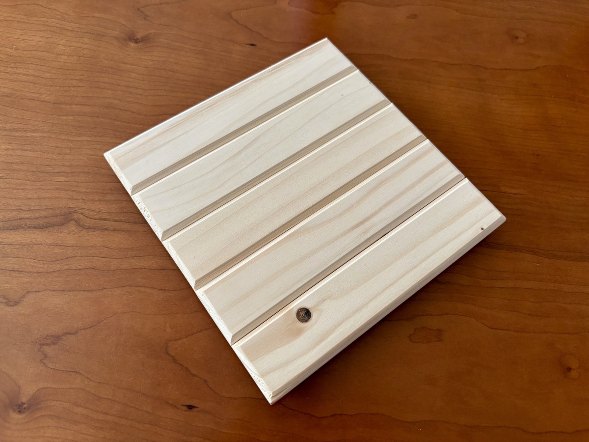 購入した「鍋敷き(税込¥180)」は、お値段もさることながら、天然木(松材)のしっかりした造りもステキ!