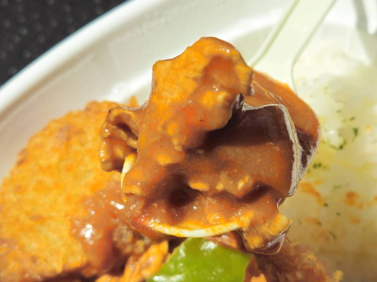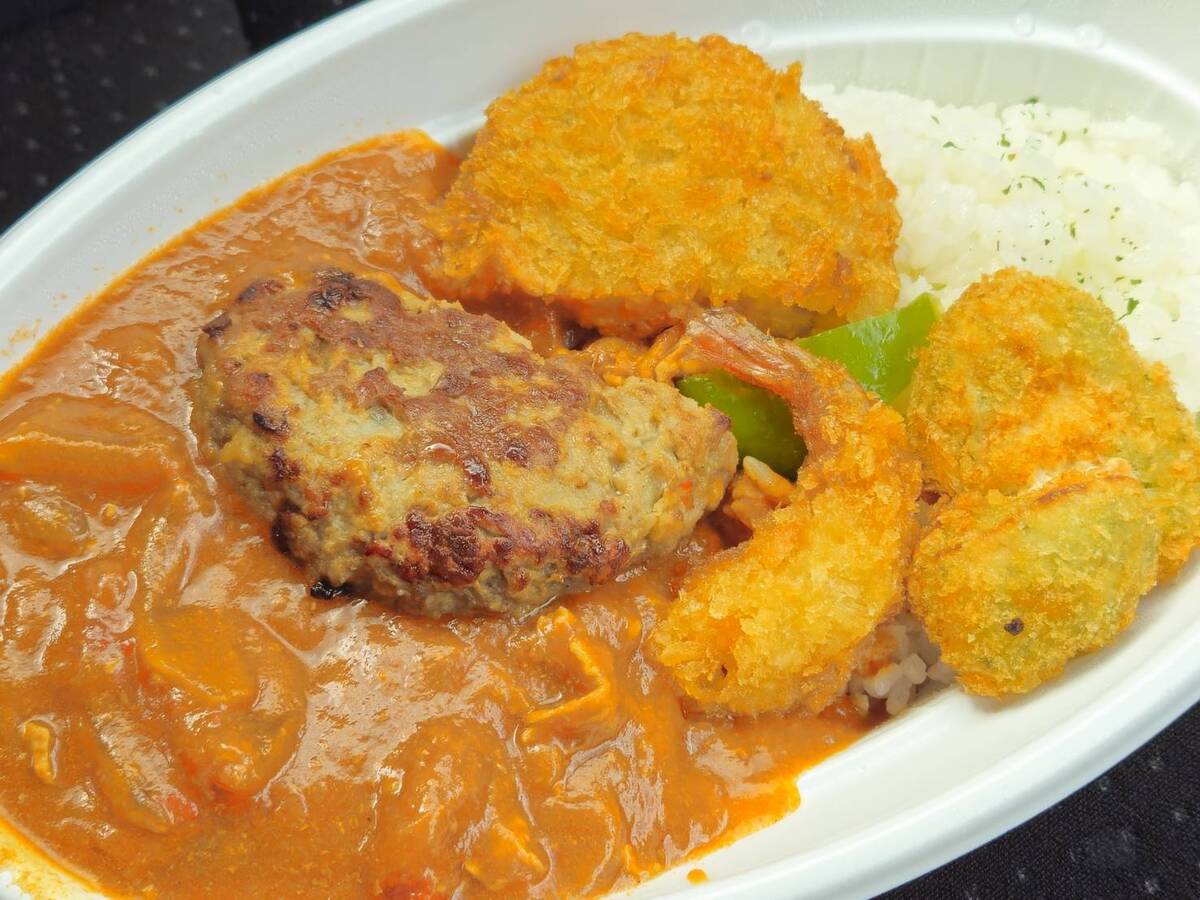 豚肉がたくさん入っていて食べ応えがあるにも関わらず、エビフライやコロッケもトッピングされていてかなりのボリューム感。