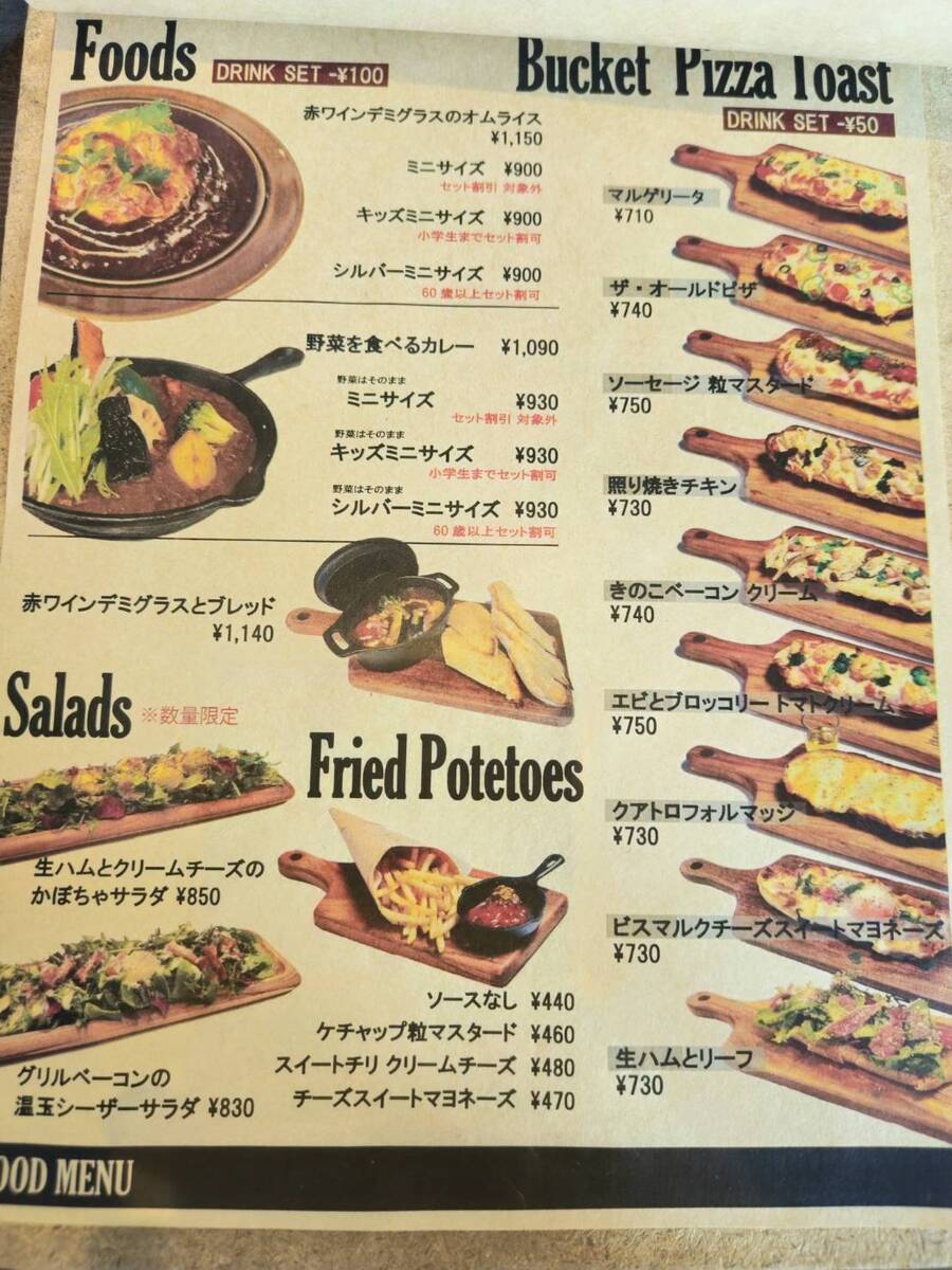 オムライスやカレー、ピザトースト、サラダなど食事メニューが豊富なのも特徴。