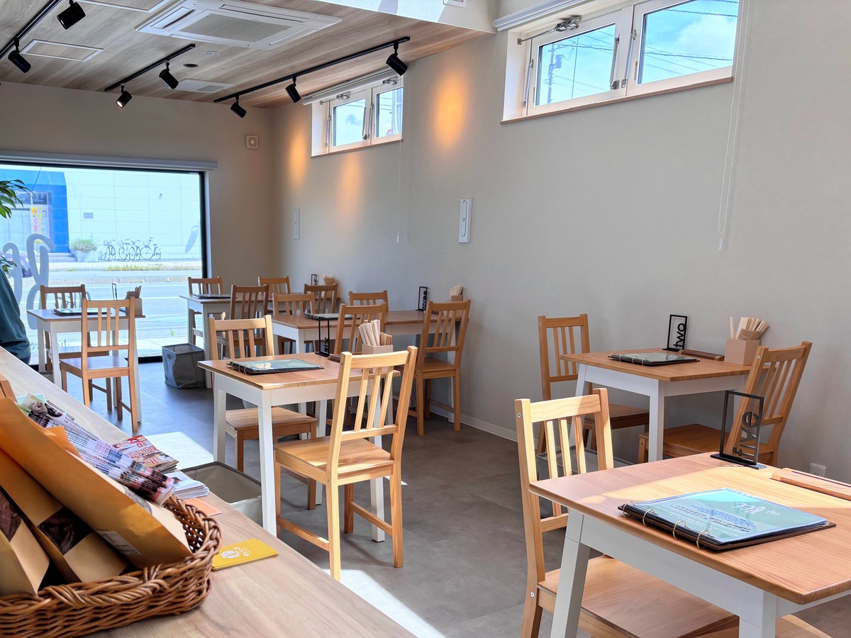 店内は明るく、カウンター席のほかにテーブル席が多数ありました。