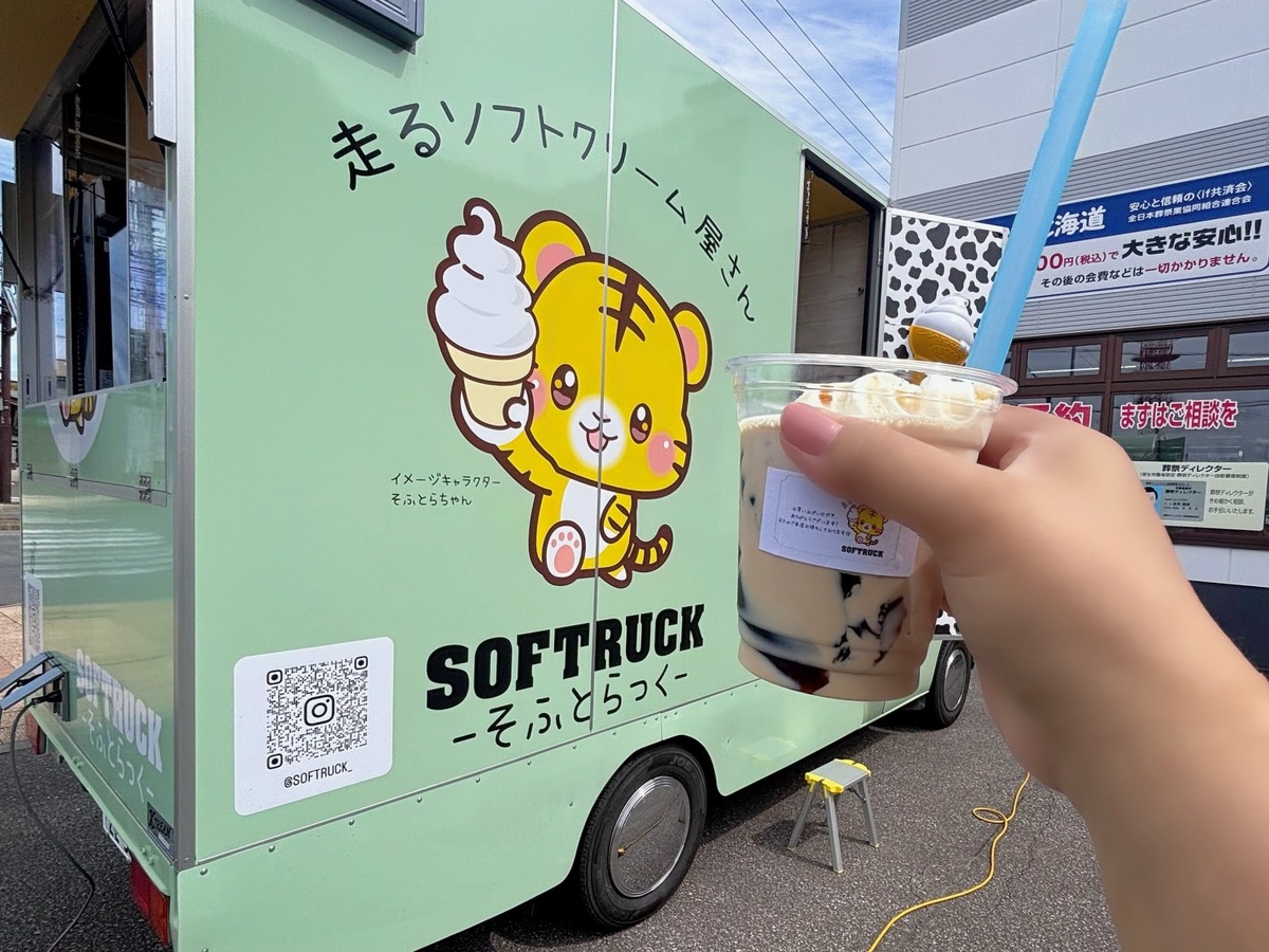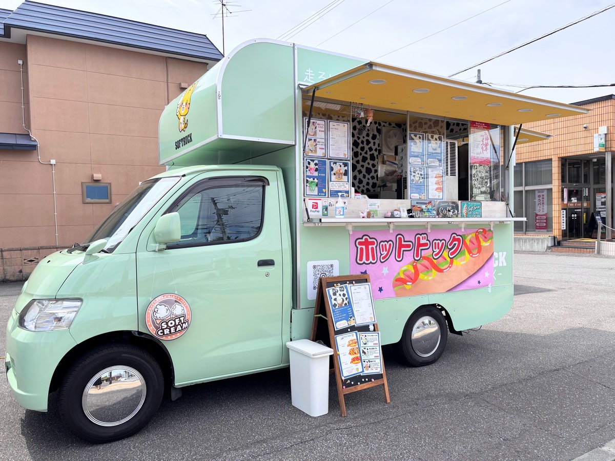 ソフトクリームやドリンク、ホットドックのキッチンカー「そふとらっく」。