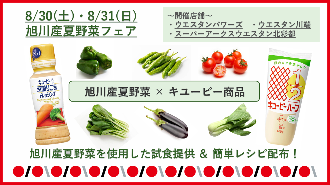 2025年8月30日(土)、31日(日)に旭川市内のウエスタン店舗で開催される『旭川産夏野菜フェア』のご紹介です。