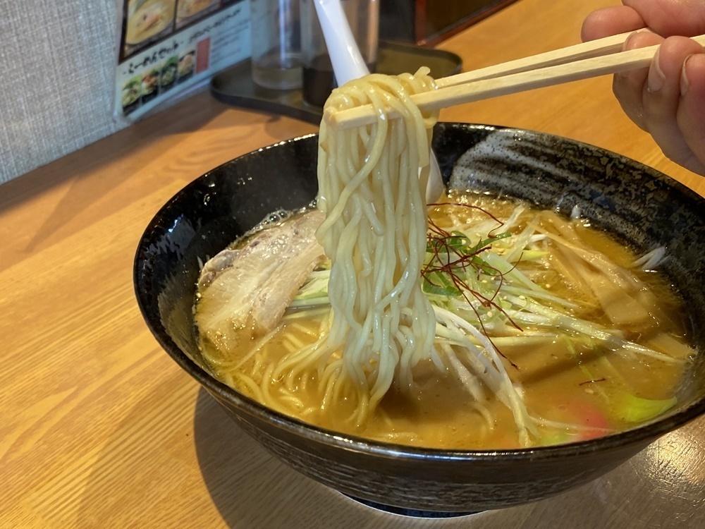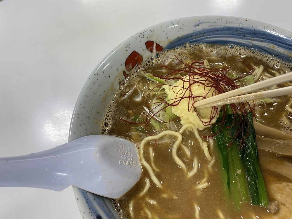 スープは、濃厚で味噌の甘さより塩味を強く感じます。しかし、塩味の奥にはコクや旨みがあって、食べ進めて行くうちにクセになります。