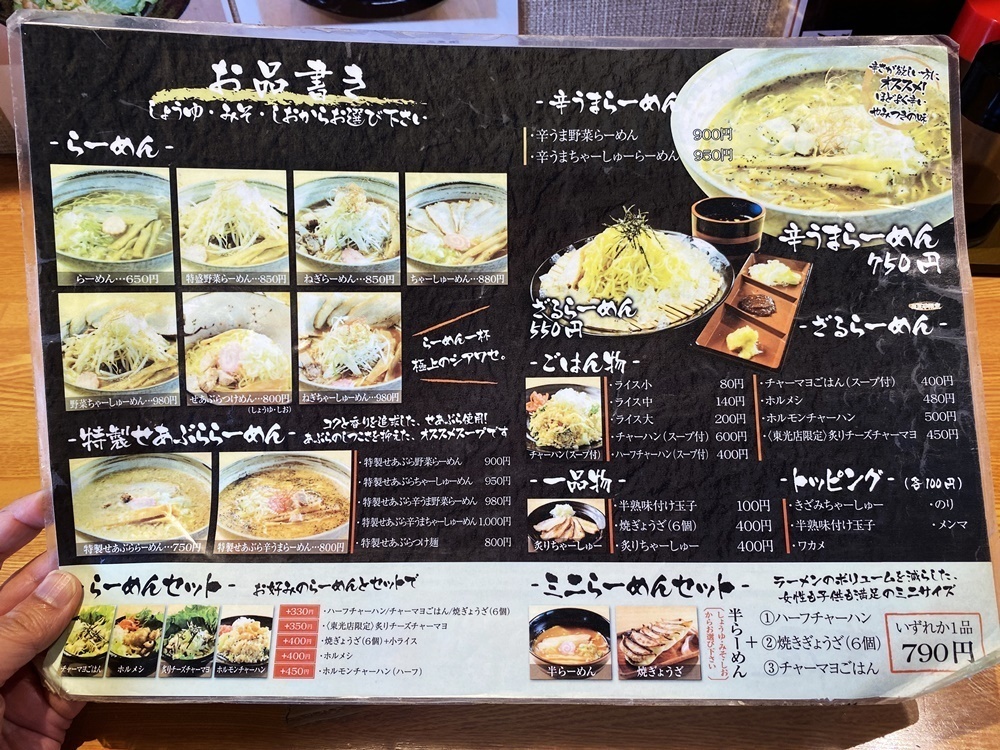 なお、しょうゆ・みそ・しおは同じ価格。多くのラーメン店では、50~100円ほどみそラーメンが高いので、とてもお得な感じがします。