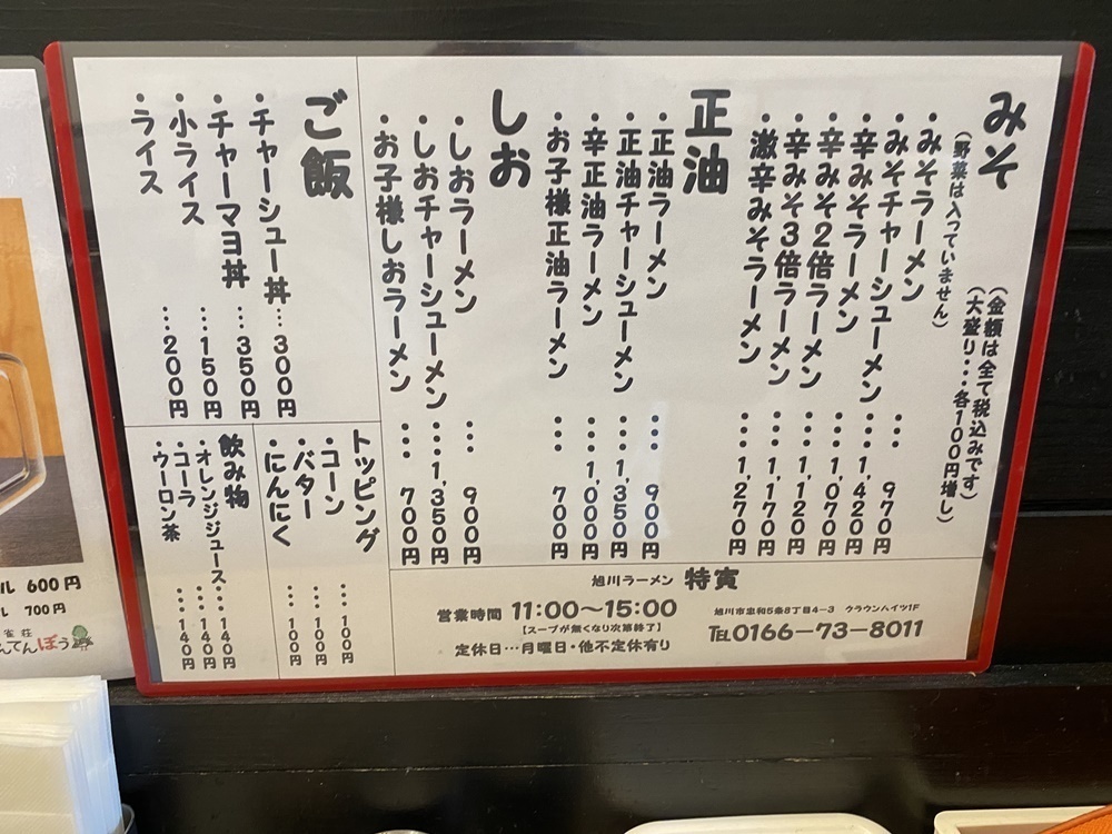 オープンしたのは2021年7月で、2020年11月にオープンした「特一番 忠和店」が「旭川ラーメン 特寅」と名前を変えて再オープンしたそうです。
