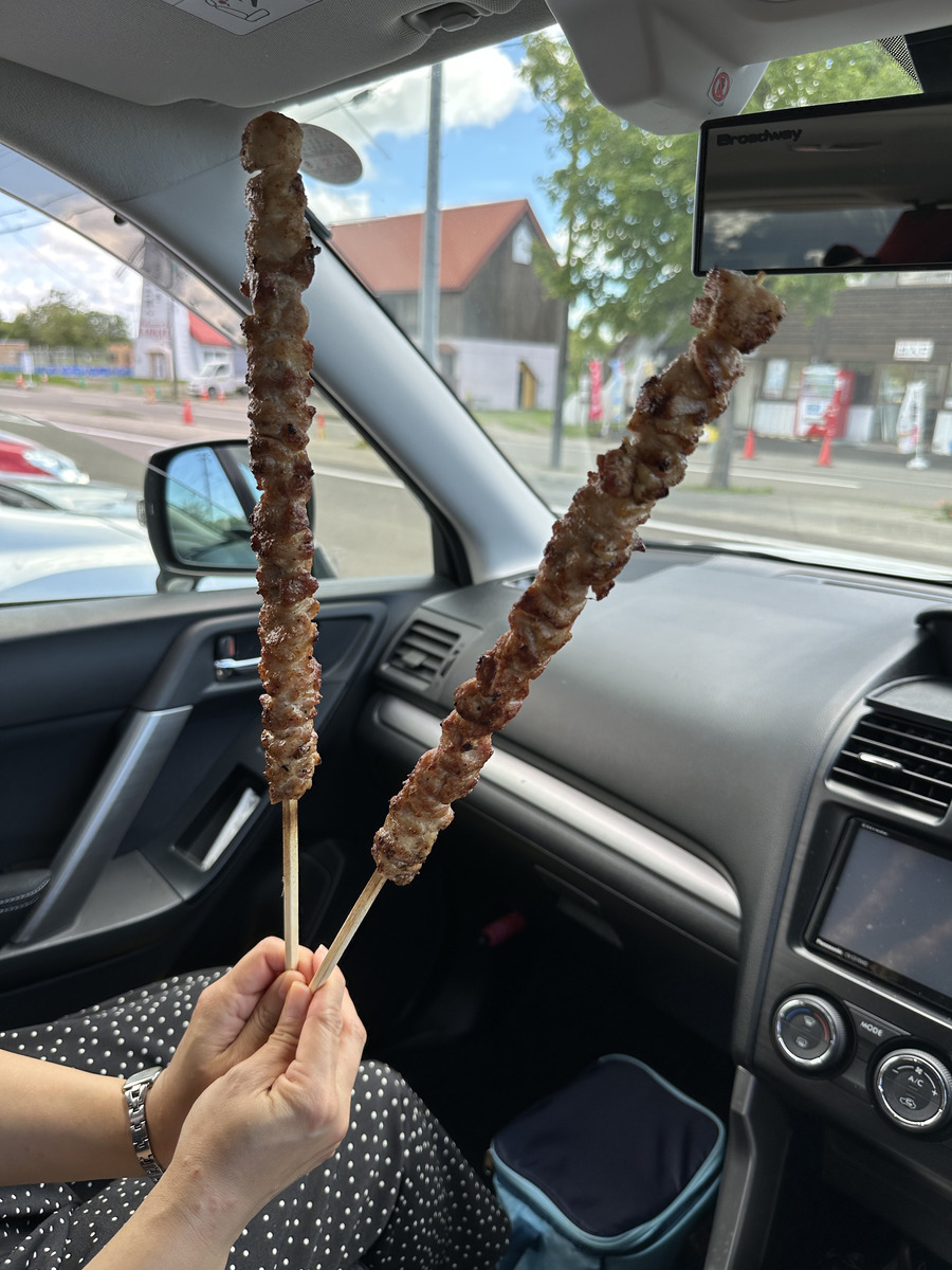 ソフトクリームを食べて275号線を旭川に向かって帰宅途中、何か食べ物無いかな~と思っていたところ、道路沿いにジャンボ焼き鳥ののぼりが!