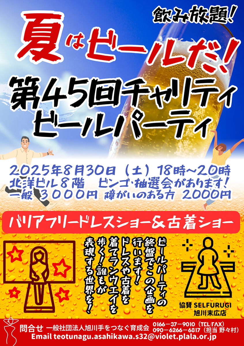 2025年8月30日(土)に旭川市の北洋ビルで『第45回チャリティビールパーティー』が開催されます。