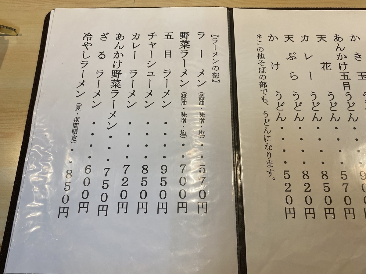 以前はお品書きに「そば屋のおいしい裏メニュー」としてラーメンが書かれていましたが、いつの間にか表メニューになったようです。