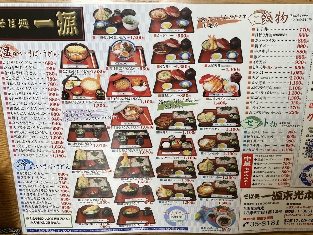 かつて「そば処一源」には、豊岡店や東光九条店もありましたが、現在はここ「東光本店」と「東4条店」の2店舗のみです。