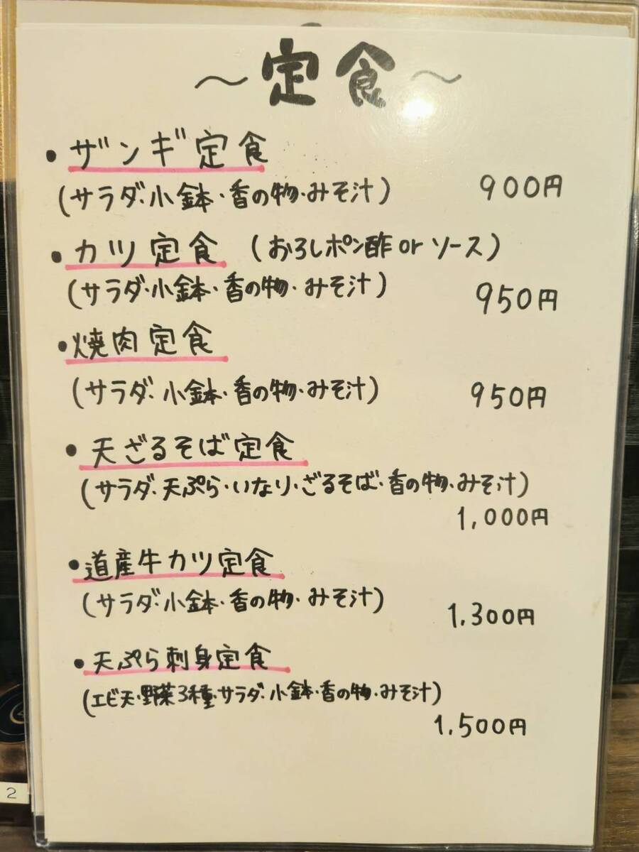 メニューはザンギ定食やカツ定食、お蕎麦に天ぷらなどジャンル様々。
