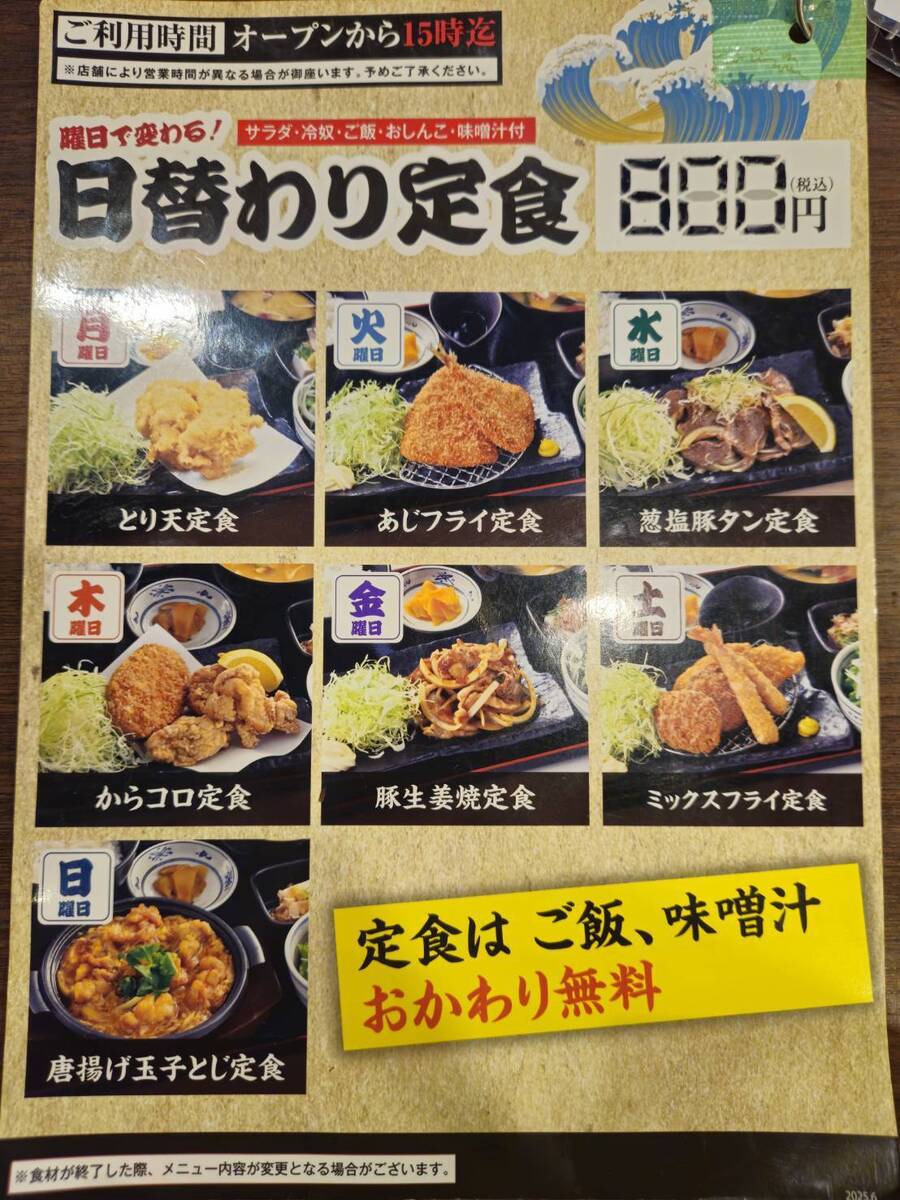 このほかに日替わりの定食もあります。
