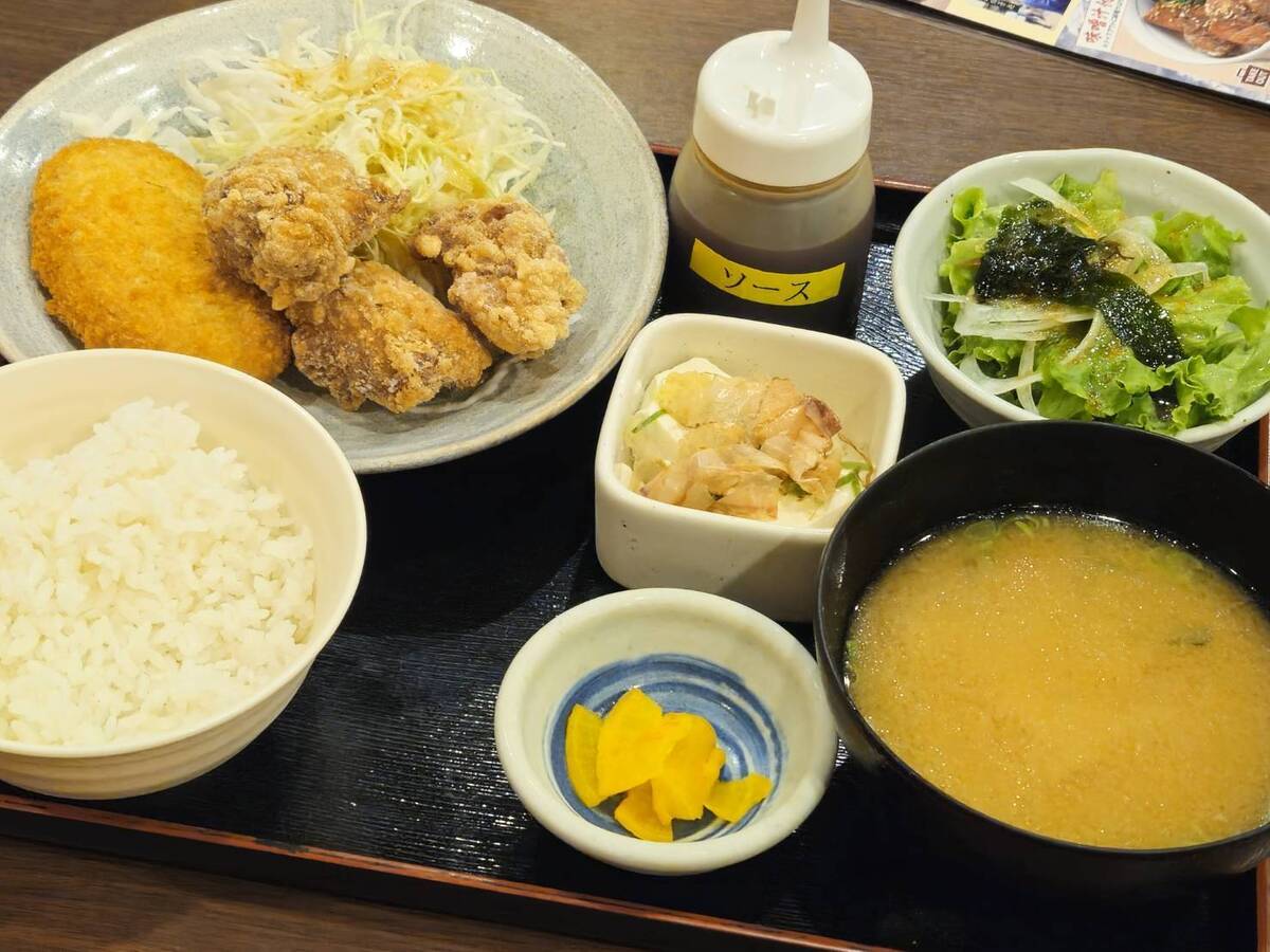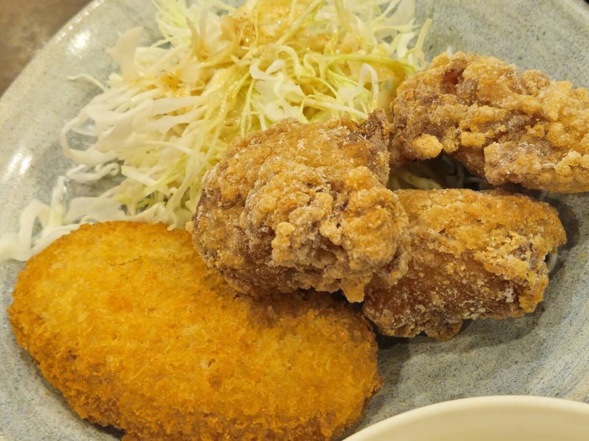 から揚げとコロッケの両方が味わえるセットです。