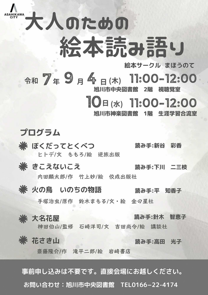 【9月4日】旭川市中央図書館で大人のための絵本読み語り開催