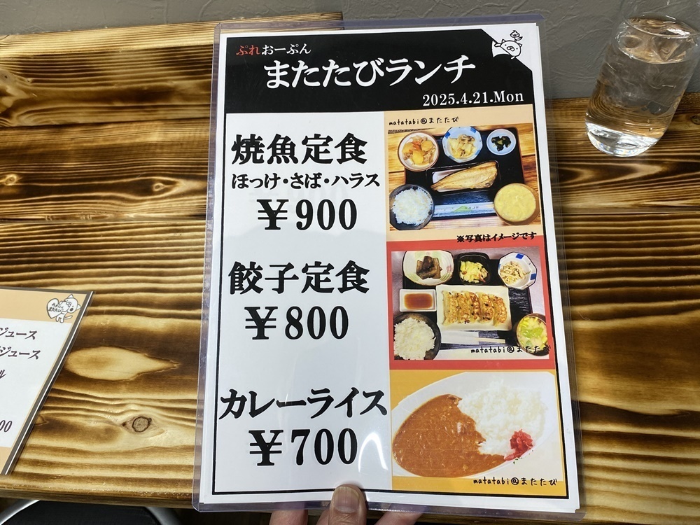 伺った時は、まだプレオープンで、メニューは焼魚定食と餃子定食、カレーライスだけでした。徐々に増えていくとのことでしたので、現在は増えているかもしれません。