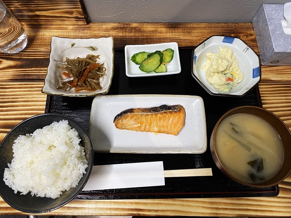 注文したのは「焼魚定食」です。焼魚は、ほっけ・さば・ハラスから選べたので、鮭のハラスにしました。