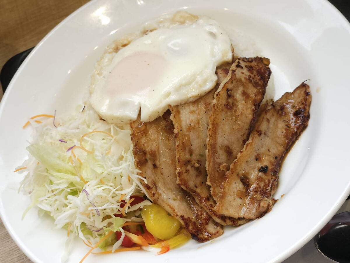 期間限定のベトナム料理でライスの上に豚肉、目玉焼きがのってサラダも添えられています。