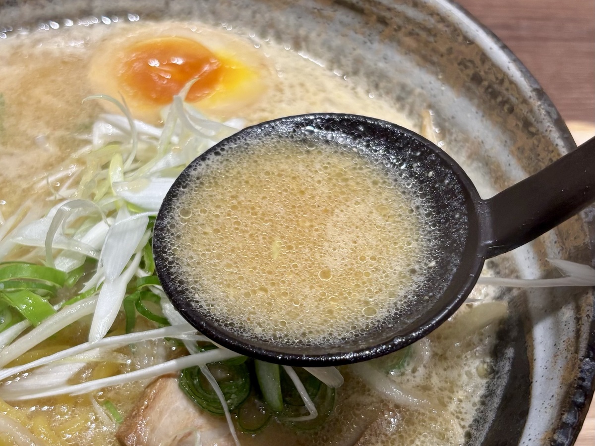 見た目からもわかる通り、白味噌がベースのスープとなっているため、食べる前から、まろやかな香りに食欲をそそられます…。