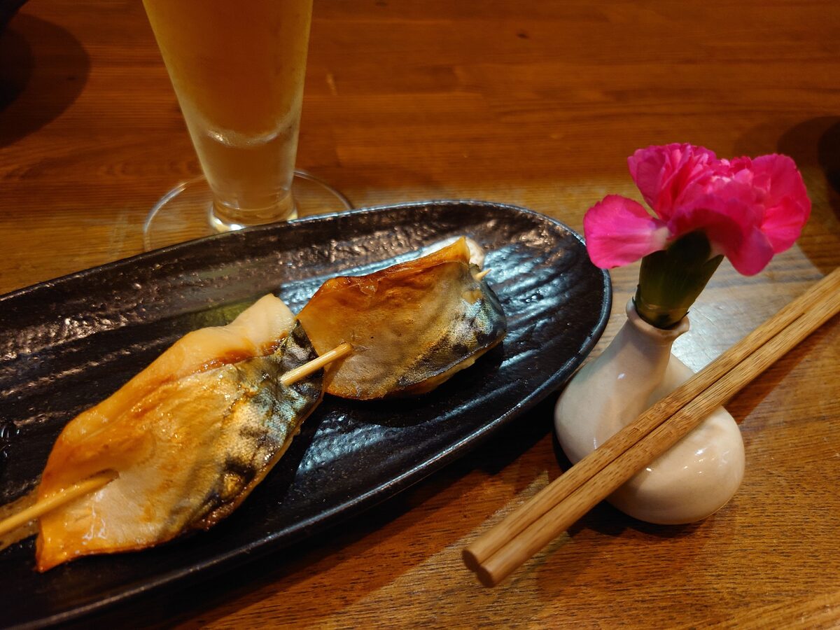 焼サバが串に刺さって来るなんて、食べやすいし、見た目も面白い。