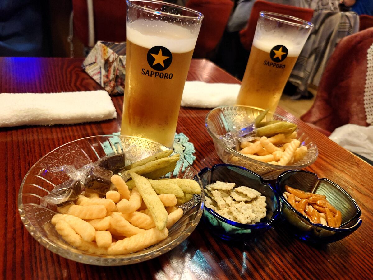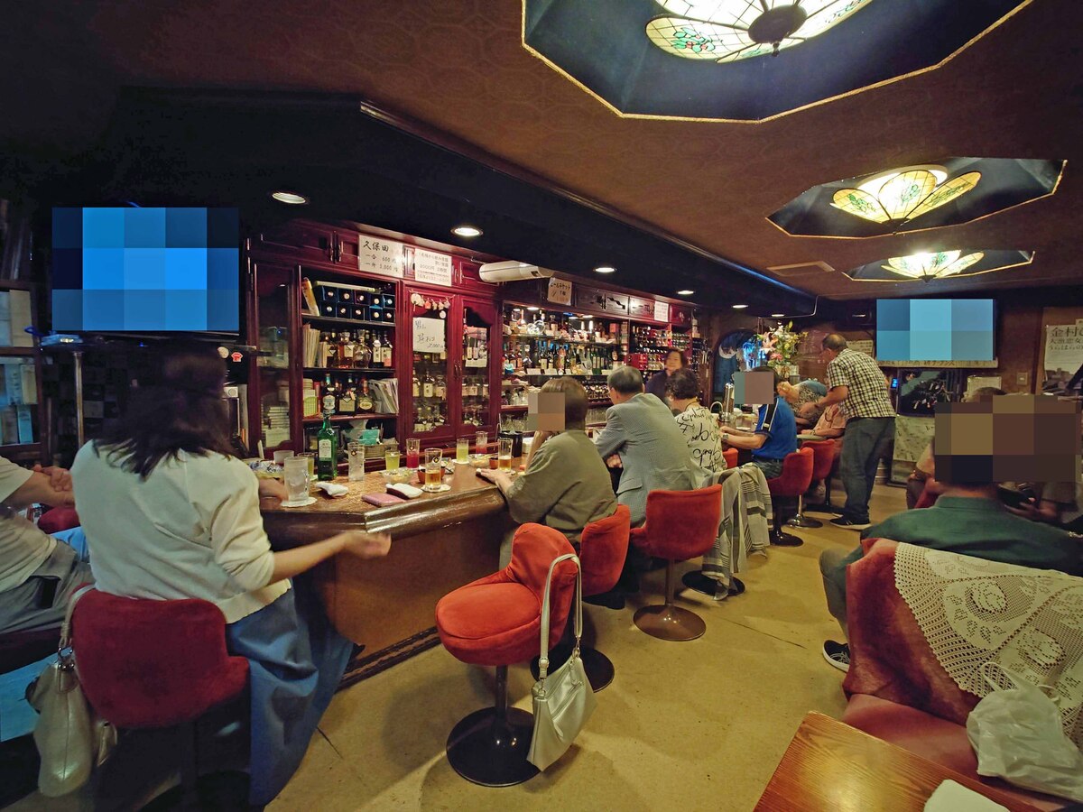 この時間にこの広めのお店が満席とは、大人気スナックだね。