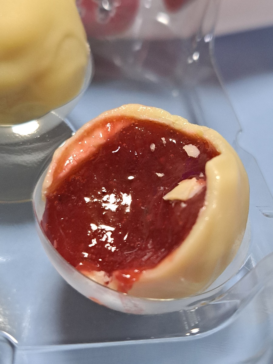 ホワイトチョコレートとジャムがいつまでも分離した感じになります。