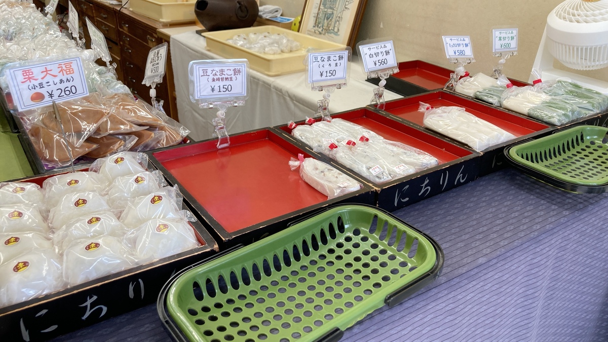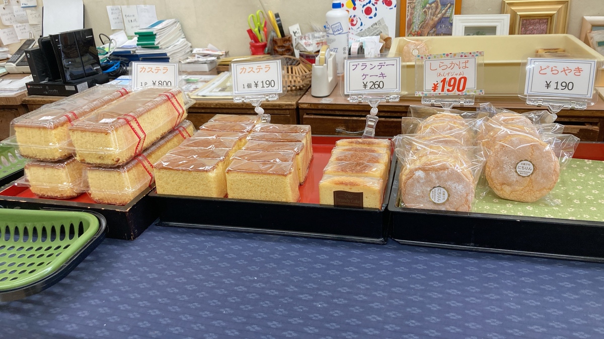 店内には、餅や大福などの和菓子だけでなくカステラやブランデーケーキなども。洋菓子なんだけど、和菓子のような?レトロさを感じるラインナップが心をくすぐります。