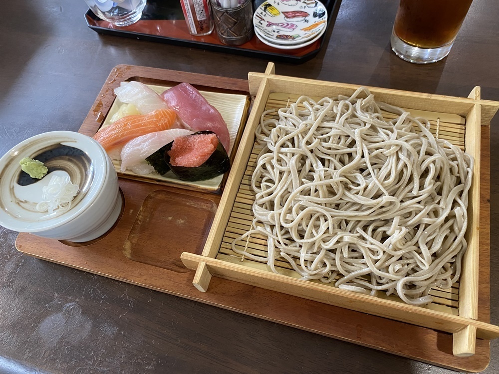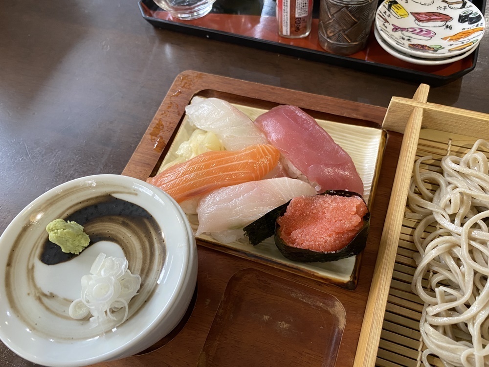 先ほども書いた通り、「おいしいお寿司も食べたいし、本格的な手打ち蕎麦も食べたい!」と来たので、注文したのは握り鮨5貫とそばがセットになった「生鮨セット」です。