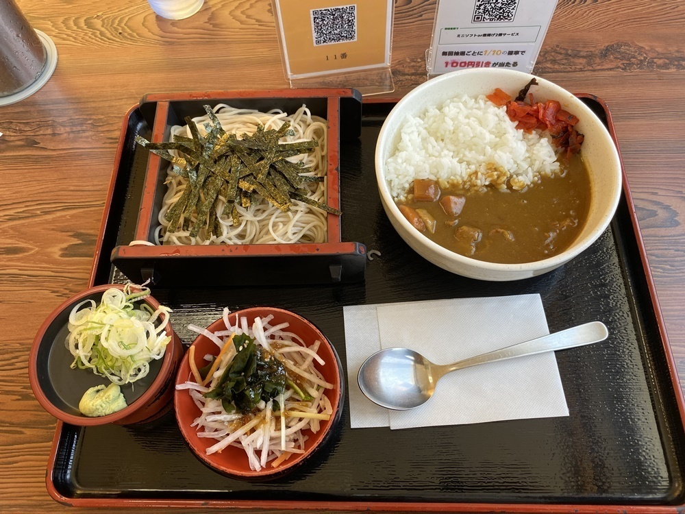 注文したのは、ハーフサイズのざるそばとハーフサイズのカレーライス、そしてサラダがセットになった「カレーセット」。