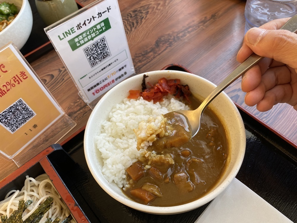 おそば屋さんの出汁が効いたカレーライスが好きなんです。