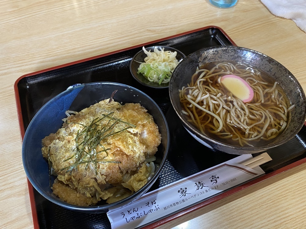 かつ丼もそばもレギュラーサイズで満腹になりますよ。