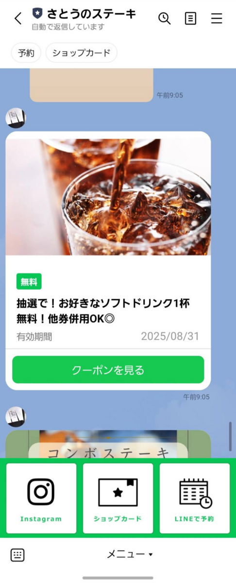 公式ラインがあり、お友達登録をすると定期的にクーポンなどが配信されます。