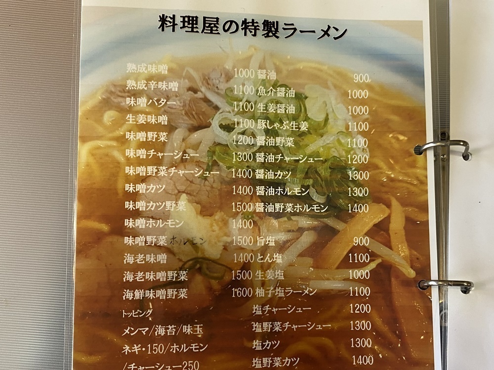 「料理屋の特製ラーメン」と書かれたラーメンは、専門店にも負けない種類の多さ。