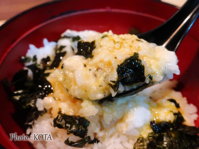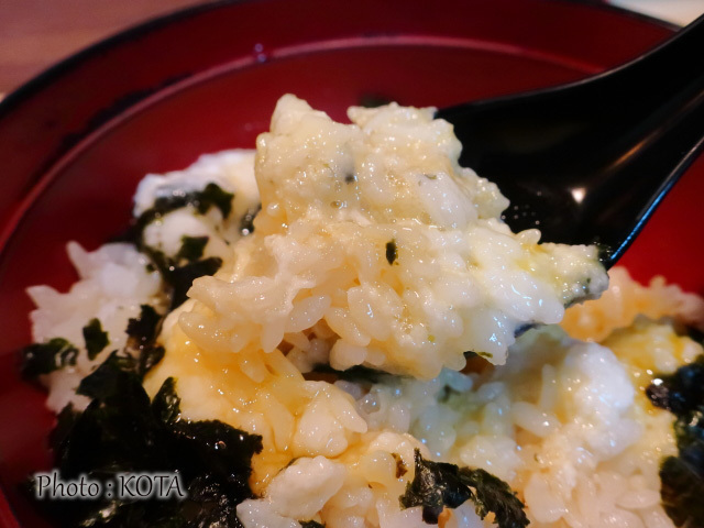 いわゆる「特上」の部分だ(笑)。タレはほんのり甘酸っぱく、卵黄のまったり感を特濃の旨みへと変えてくれている。これにほんのり甘味さえ感じる新鮮な長いもとろろが相まって、旨味は滋味へと昇華する。
