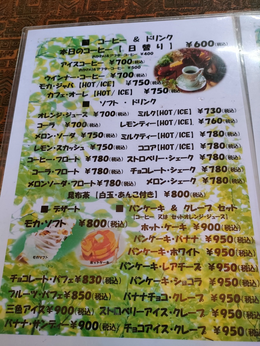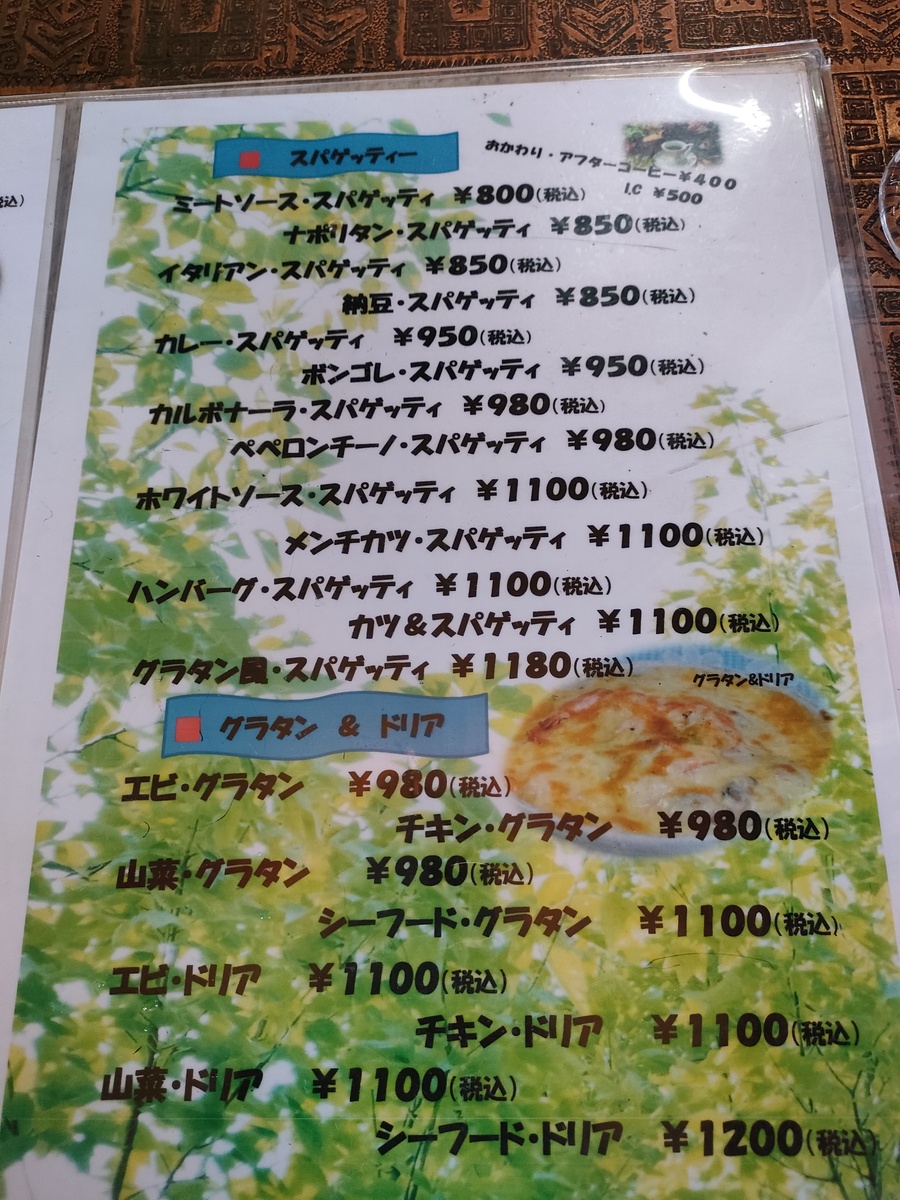 こちらのお店は喫茶店と呼んで良いのか、洋食屋さんと言った方がいいのか、美味しそうなメニューがずらり。