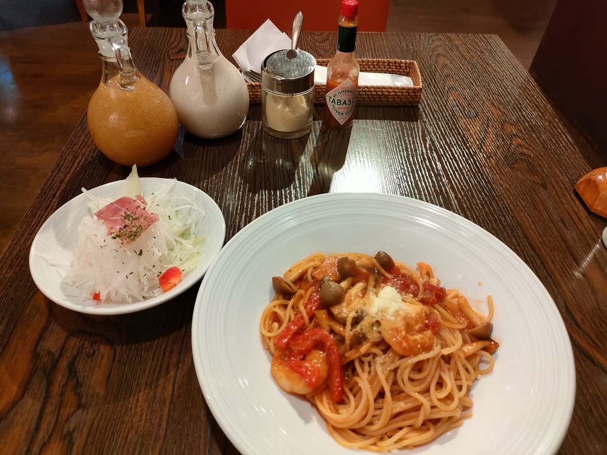 美味しいサラダを味わって俄然期待値が上がるナポリタン。