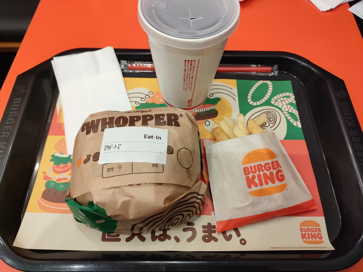 写真をご覧頂いて少し違和感があるかも知れませんが、それはポテトが小さいワケでも、ドリンクのカップが小さいワケでも、トレーが子供用なワケでもなく、ただただ主役のワッパーがデカいのでそう見えてしまうダケなのです。