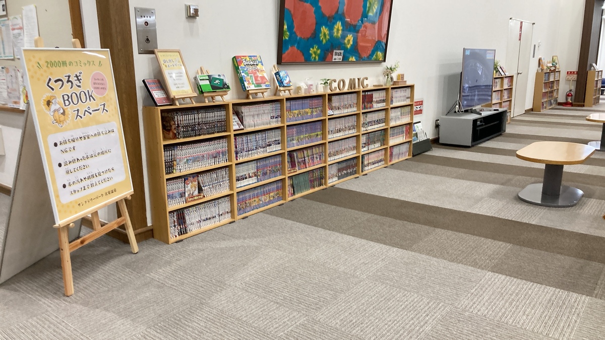 館内は新しく休憩スペースも広く、漫画やボードゲームがあり、ファミリーにもおすすめです。
