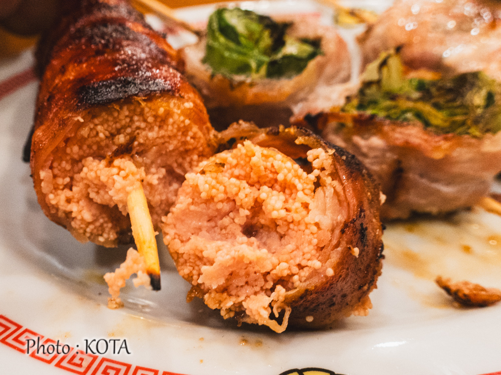 で、暖簾には「炭火野菜巻き串と餃子」とあるので、まずそれを味あわなければ始まらない。