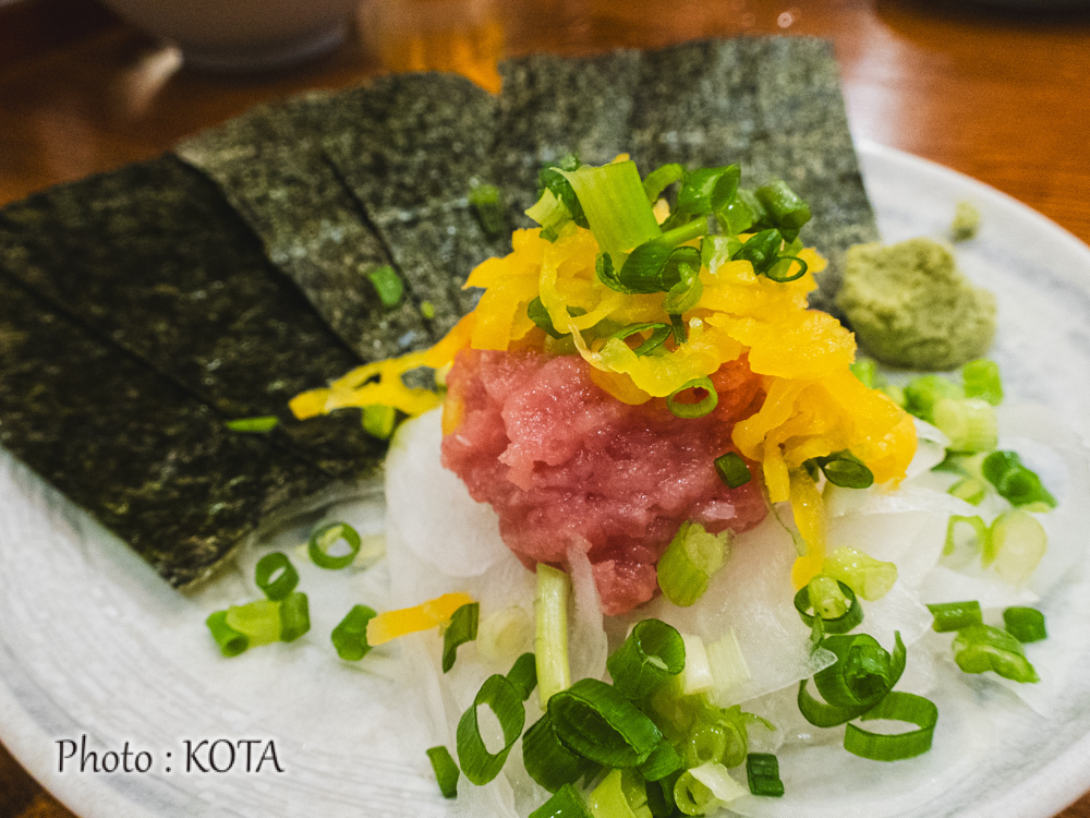 たくあんの甘味とマグロのまったり感が混然となったところに磯の風味。