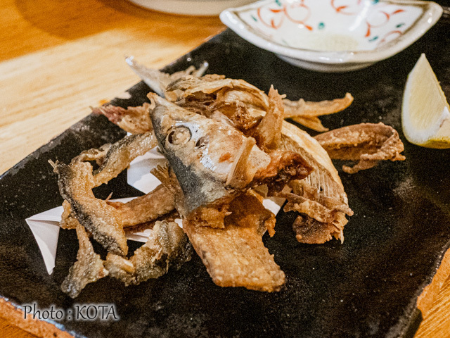 いわゆる、さっきのサンマ刺身の刺身じゃない部分を素揚げにしたもの。これがまた香ばしく、なかなかの珍味。
