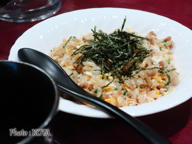 上は納豆チャーハン(650円)。女将のチャーハンはしっとり柔らかな、いかにも家庭のチャーハン。