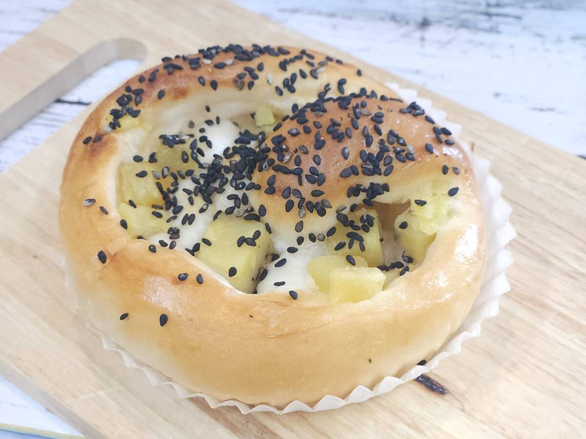 クリームチーズの風味も合わさり、程よい塩味と甘さの塩梅が丁度良い秋のパンです。