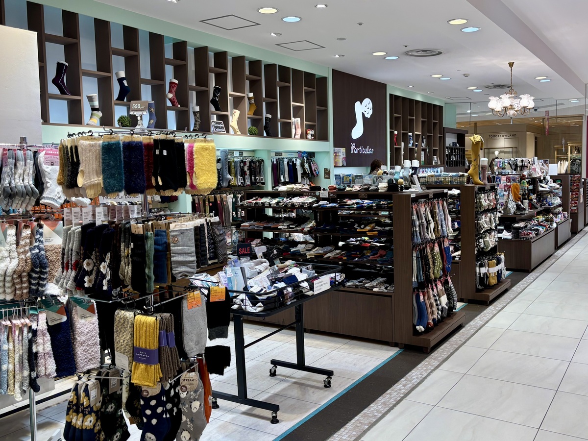 豊富な種類のレッグウエアがところ狭しと並んでおり、お店のコンセプトは“くつしたから始まる楽しい1日。”なのだそう。