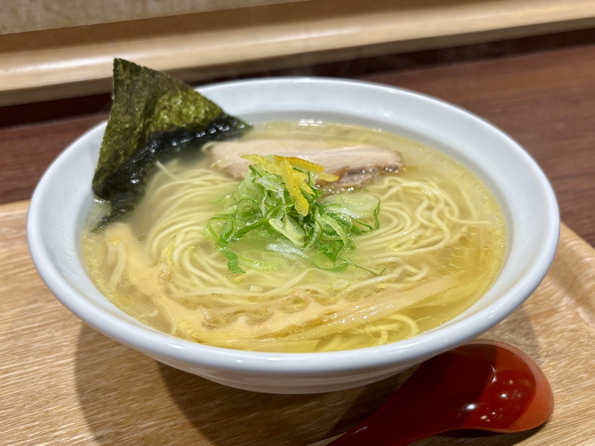 淡麗スープの「鶏清湯(とりちんたん)」は、和出汁と鶏ガラの旨味が全体に行き渡っており、トッピングの柚子の香りも良いアクセントに。