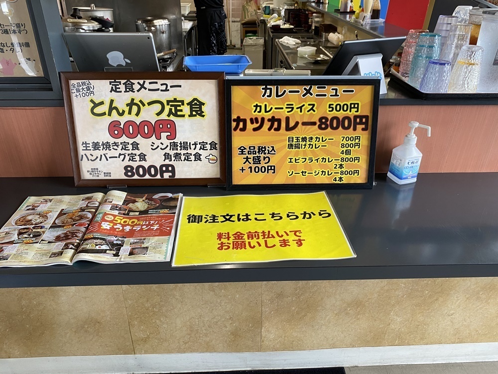 お品書きには、カツ丼など丼物の他にも定食やカレーライス、チャーハンなどの食堂の定番メニューが並んでいます。なおラーメンやそば、うどんなどの麺類もありましたが、6月から休止しているそうです。