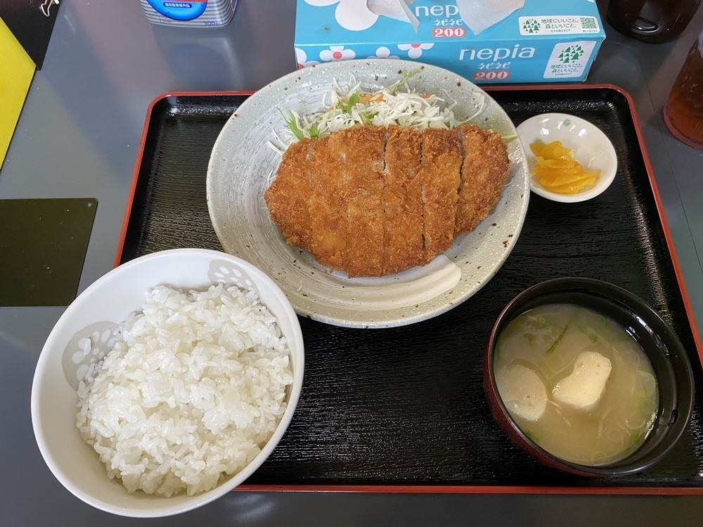 前金で代金を支払い席に着くと、それほど待つことなく「とんかつ定食」が出てきました。