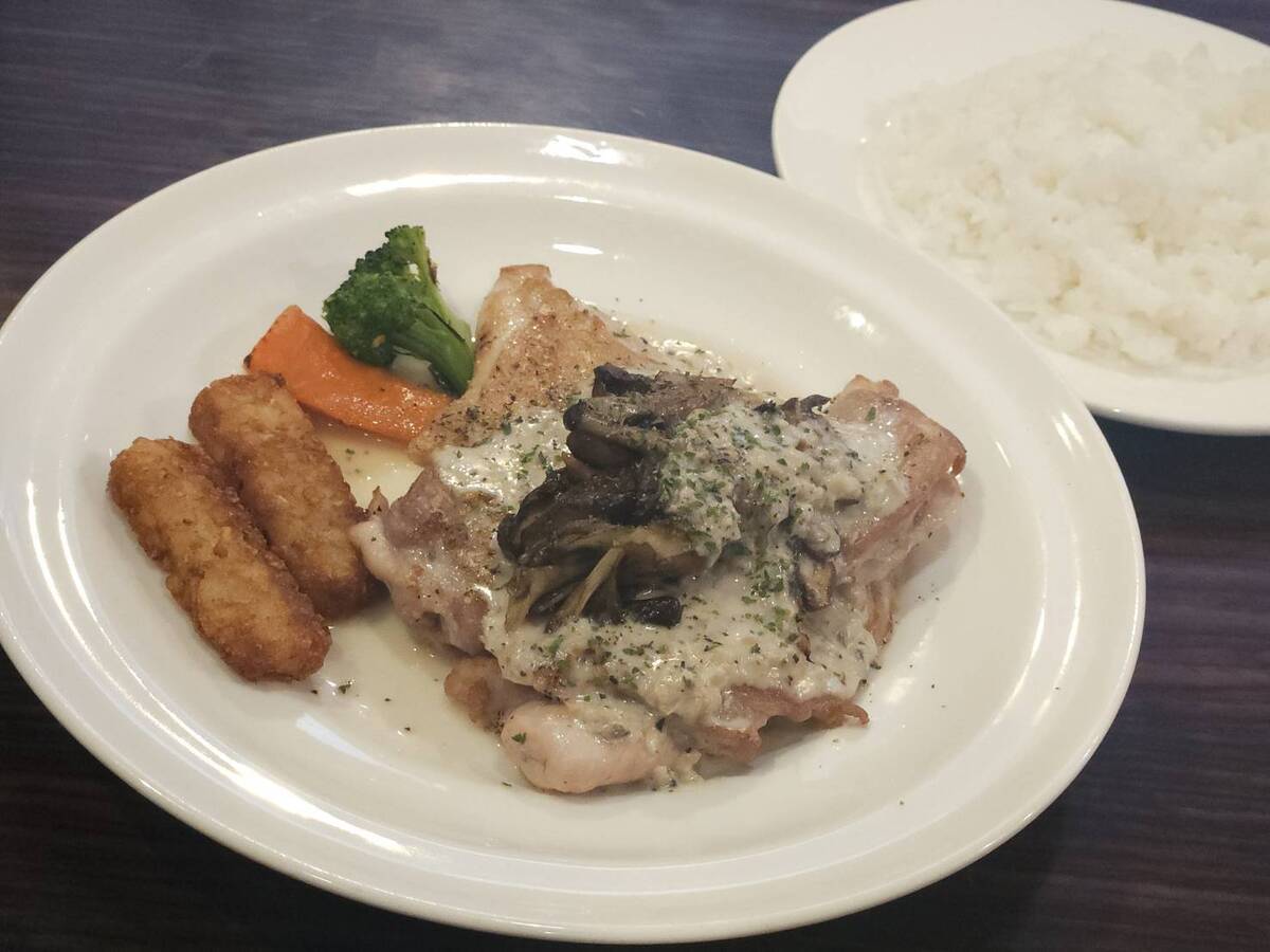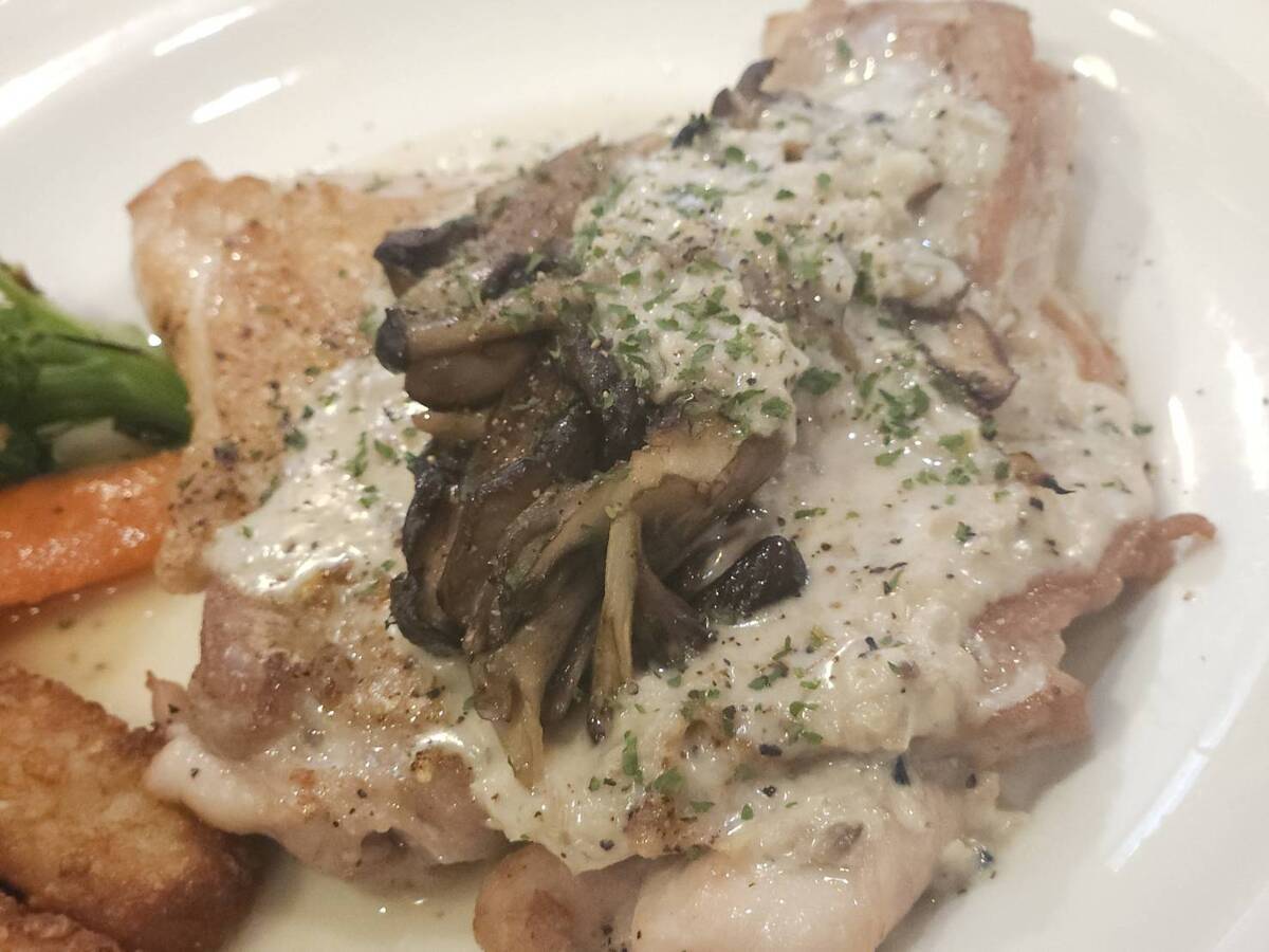 チキンにキノコなどをバターで炒めたデュクセルソースをたっぷりかけた秋満載のメニューです。