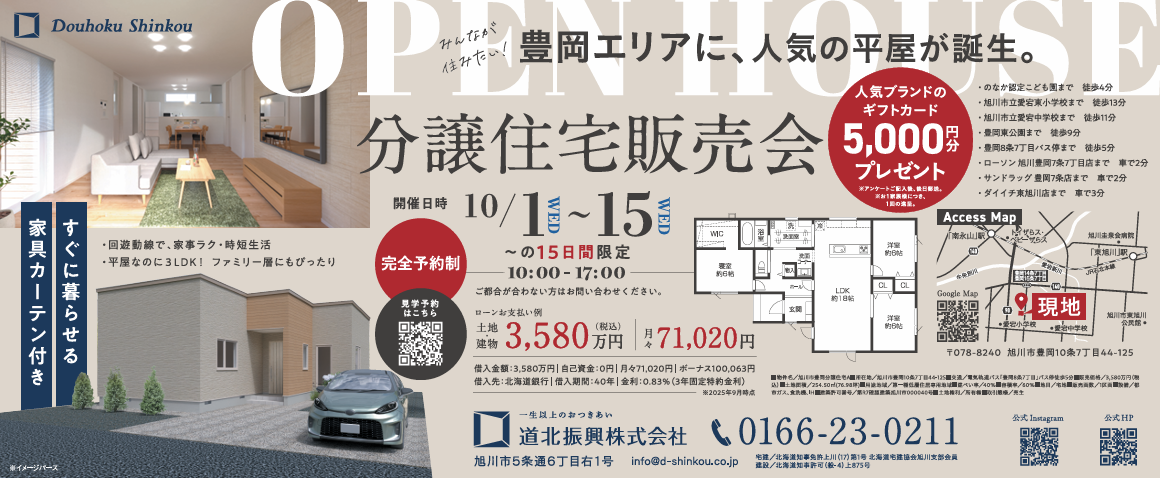 2025年10月1日(水)から15日(水)まで旭川市で道北振興の『分譲住宅販売会』が開催されます。