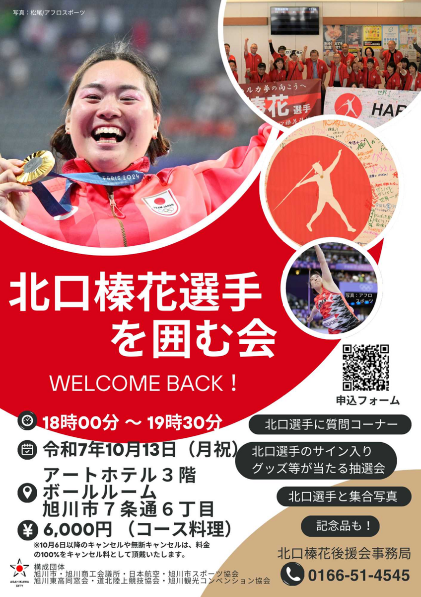 2025年10月13日(月祝)に旭川市のアートホテルで『北口榛花選手を囲む会』が開催されます。
