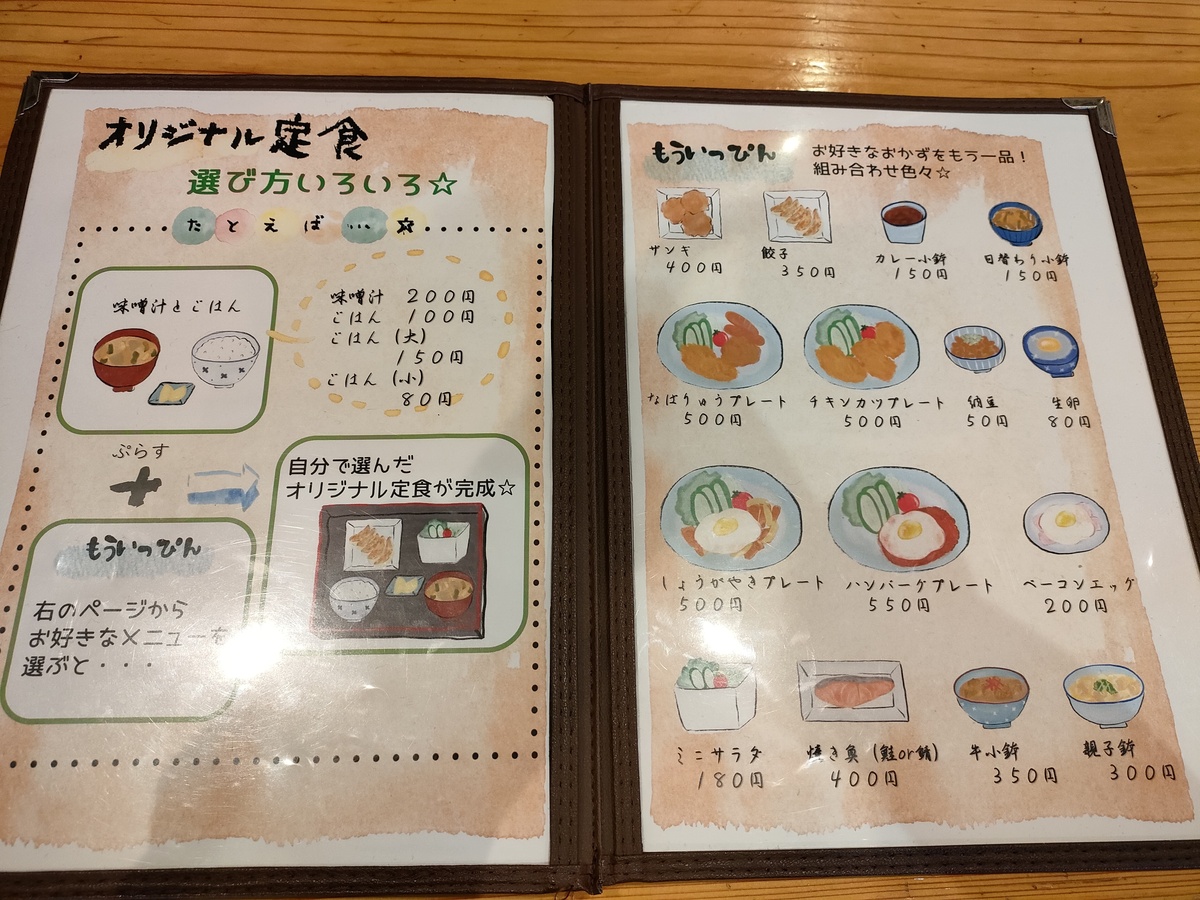 メニューは和洋の朝定食のほか、お好みの総菜を合わせて自分だけのオリジナル定食を注文することもできます。