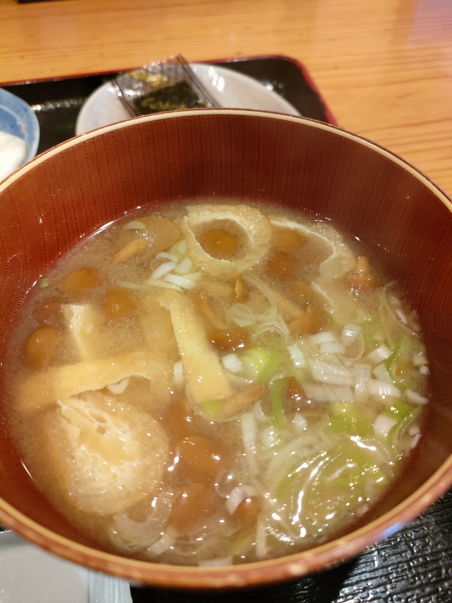 お味噌汁の具材は日替わりで、この日はなめこの味噌汁でした。